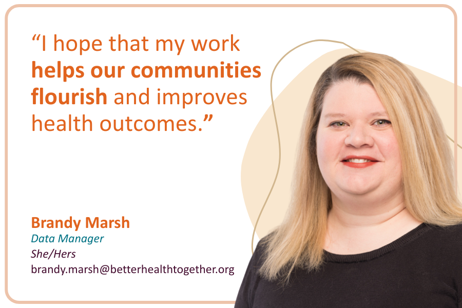 Brandy has called Eastern Washington home for almost 20 years. She joined Better Health Together as a Data Manager in 2024, bringing 16 years of non-profit experience and a commitment to improving health outcomes. Brandy has a Bachelor’s in Psychology from Gonzaga University and is currently pursuing her Master’s in Data Analytics. Her passion for illuminating data insights and identifying community needs allows her to support the well-being of our communities. She believes a healthy community is a cornerstone of a prosperous community. In her spare time, she enjoys time with family, reading, and gardening.